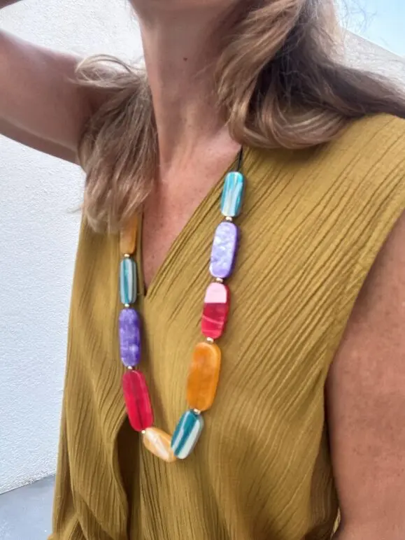 Collar largo en resina de tablas de colores, para cualquier estilo y ocasión.